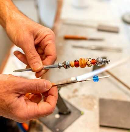 Lors d’une séance de 3 heures, vous fabriquerez des perles de verre au chalumeau à la façon de Murano (Venise). Au cours de votre visite, le formateur vous donnera toutes les informations concernant l'histoire des perles de verre.