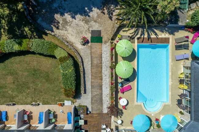 Notre Hôtel dispose de 20 chambres confortables, dont 10 chambres supérieures au rez-de-chaussée (20m² avec terrasse individuelle, 5 chambres classiques et 5 chambres familiales (5 Pers) avec balcon, où vous pourrez vous détendre et profiter du soleil breton. Pour un moment de bien-être absolu, installez-vous au bord de notre piscine, savourez une planche apéritive « Terre-mer » garnie d’huîtres fraîches et laissez-vous bercer par la quiétude des lieux.