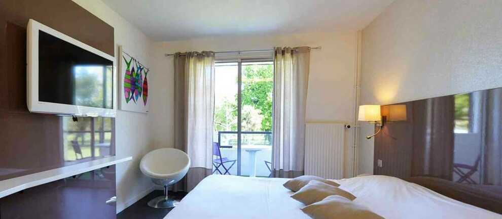 A 4 km de la mer, la piscine sur place est couverte et chauffée de mai à septembre, le sauna et hammam, le bar, les salles de jeu et espaces salons ainsi que les terrasses ou balcons privatifs pour chacune de nos 42 chambres contribuent à un séjour détente.