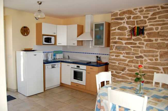 Le Gîte Ty Bihan signifie le petit gîte. Gîte à l’étage avec 2 chambres pour 4 personnes, avec ses pierres apparentes et sa déco marine.