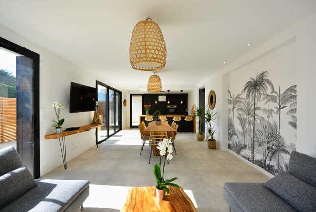 Lumineuse maison d'architecte située à 200m de la plage, la Villa Yin est dotée de tout le confort moderne : 4 grandes chambres avec 4 salles de bain attenantes (+ 4 toilettes) et lit Queensize, un séjour confortable et spacieux, TV connectée grand écran plat, exposition sud, décoration design, nature et bois, parkings et wifi gratuits, Nespresso)
