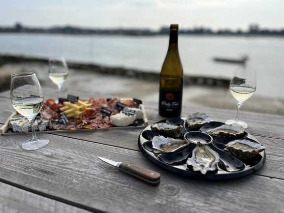 Espace dégustation les pieds dans l'eau, dans un cadre intimiste et loin du tumulte de la foule, le long du GR 34.